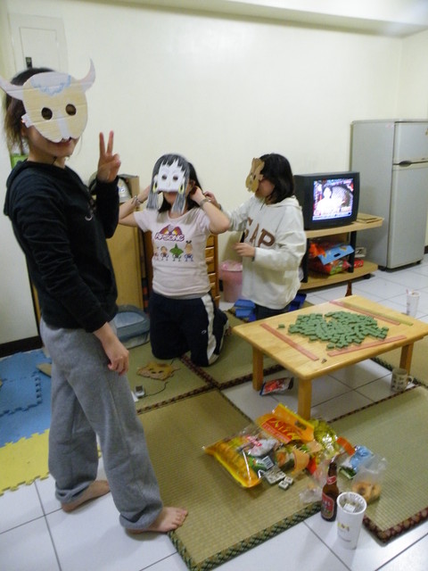 近年來第一個不用春訓的春節假期 反正閒著沒事幹 來了個新年歡樂博奕趴 想不到古溜姐興致一來 還幫大家做了面具 搞得像面具嘉年華一樣 真是笑死我們了 尤其是海賊王裡的布魯克 可說是唯妙唯肖 真是繼上次的紙板聖誕樹之後又一力作... OPD真是臥虎藏龍 藏了一堆美工人才啊 也好 這樣就看不出來是誰了哈哈哈